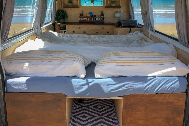 Het idee voor zo’n doe-het-zelf-camper ontstond min of meer noodgedwongen tijdens hun reis in Nieuw-Zeeland. Voor een reis van meer dan twee maanden aan de andere kant van de wereld is een camper immers bijna onmisbaar. Binnen veertien dagen toverden de reisbloggers een oude bestelwagen om tot hippe buscamper.