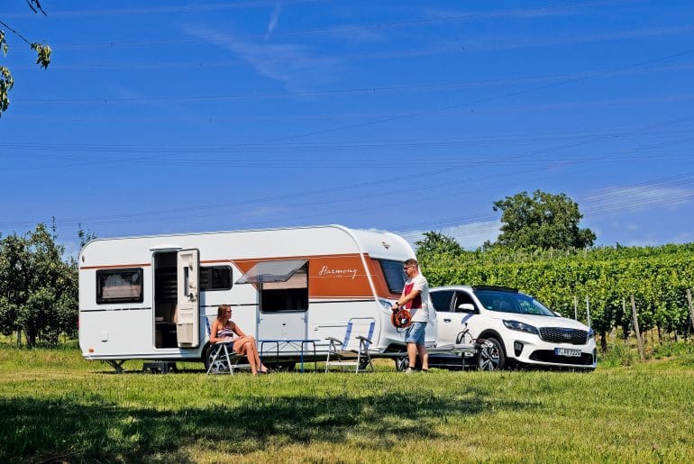 De disseldruk van de lege caravan is met 25 kilogram prima, want de meeste zware bagage zal voorin onder het bed een plaatsje vinden. De veiligheidsuitrusting is met schokdempers, een as met schuingeplaatste draagarmen, een spoorstabilisator en zelfstellende remmen op het niveau dat je standaard mag verwachten. De gemonteerde banden hebben met een draagvermogen van 850 kg per wiel al enige reserve voor opwaardering van het gewicht van de caravan.