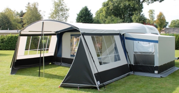 Het is opvallend dat bijna ieder voortentmerk dit jaar een luifel voor boven de voortentdeur in zijn assortiment heeft. Doréma maakt de Futura 330, Isabella de Penta Thirty, Wigo de Rolli. Het grote voordeel is dat je beschut naar binnen kunt en vooral dat het niet naar binnen regent als de voortentdeur open staat om te luchten. Wigo rekent € 179 voor de Rolli Premium luifel, Isabella € 149. Bij Doréma zit de voordeurluifel voortaan inbegrepen bij de Futura 330-voortent (€ 389).