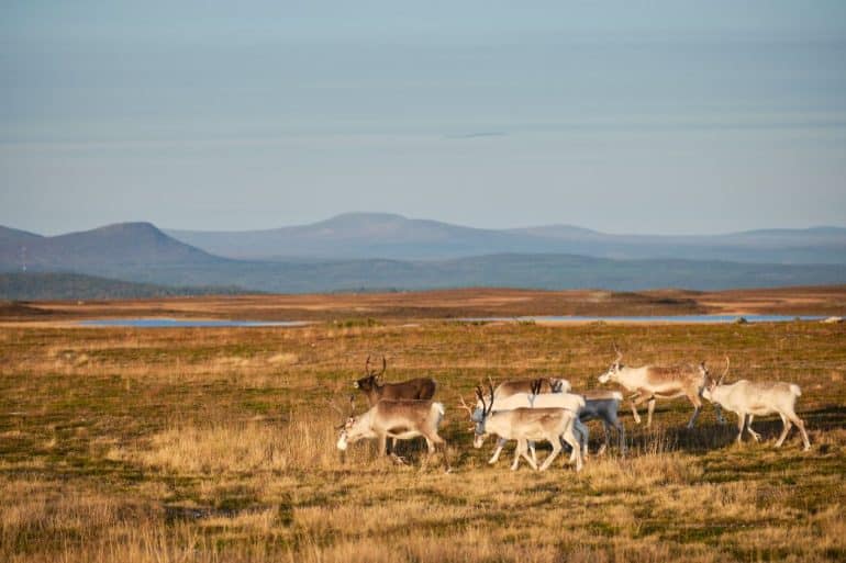 De weg is half september ongelofelijk mooi. Net als zoveel andere wegen in Zweden is dit een gravelweg, maar je kan er ook met een grotere camper prima overheen. Rijd niet te snel om je schokdempers en banden te sparen, maar ook om beter om je heen te kunnen kijken. We overnachten op een grote parkeerplaats met uitzicht over de omringende heuvels. We zien tientallen rendieren in de omgeving rondscharrelen.