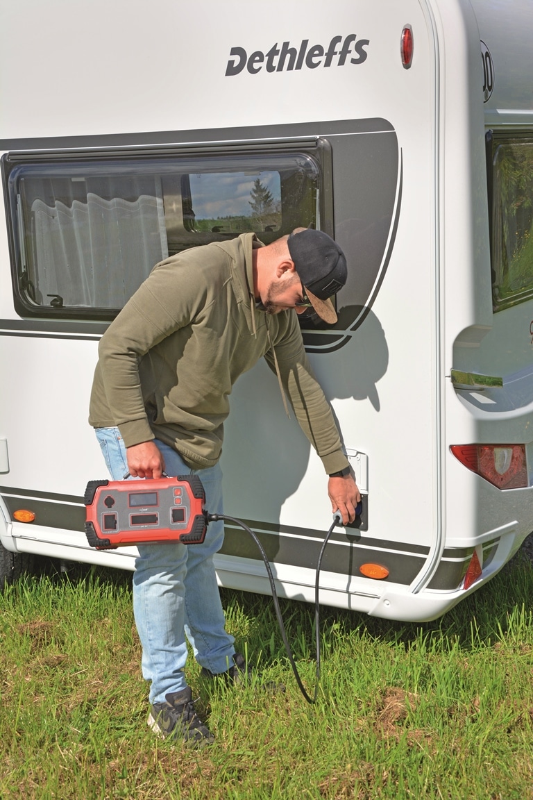 Volgens de fabrikant kan de Powerboost echter niet alleen mobiele telefoons opladen, maar ook dienen als starthulp en worden gebruikt als batterijlader. Met een omvormer zou de energie dus via het CEE-stopcontact de caravan moeten bereiken.